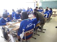 11月16日と18日の2日間に分け、1年生を対象に市川市教育委員会「学校支援実践講座」を実施しました。学校において、架空の事例をもとに、学校内で起こりうる人間関係のトラブルを話し合う授業を行いました。交流会において、地域支援者がクラスの各班に入り、生徒たちの話し合いの進行役を務め、異なる視点や考えを引き出す役割を担います。生徒たちが地域支援者と一緒に話し合い、日頃とは違った一面が見られました。