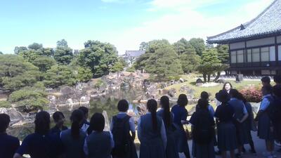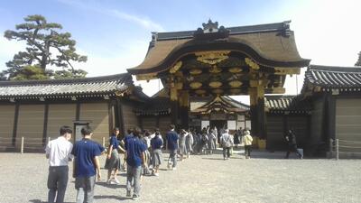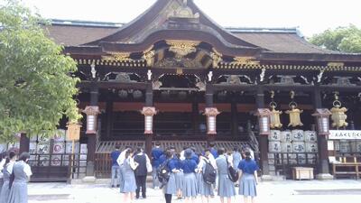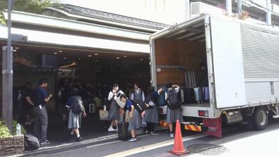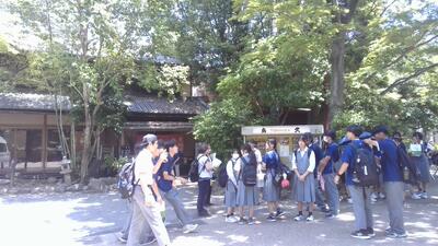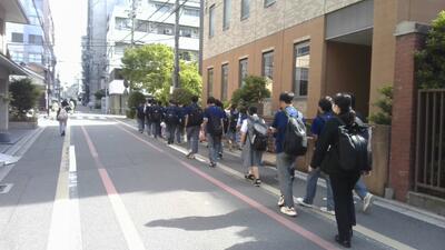 1年生の校外学習です。校内にバスが5台入っています。運転手さんのテクニックがすごいです。