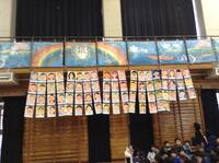 1年生の描いた6年生の似顔絵は、体育館の壁面に飾りました。