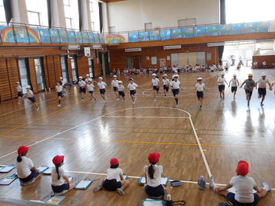 5,6年生の希望者を対象に、休み時間を使って新体力テストに取り組みました。県や市の運動能力証の取得に向けて、春に実施した結果を向上させようと頑張っていました。