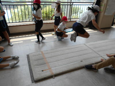 地震や津波に対する避難の仕方を確認するために、訓練を行いました。はじめは大地震が発生したことを想定し、机の下に迅速に隠れました。その後、津波が到達することを想定し、各学年が3つの校舎のそれぞれの屋上に分かれ避難しました。この訓練には、幼稚園児も参加し合同での訓練を実施しました。