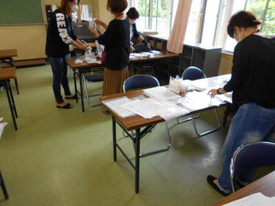 6月9日、PTA美化部の方々が校舎内の昇降口や窓、トイレなどを清掃して、きれいにしていただきました。校舎内がピカピカになり、子どもたちは気持ちよく生活できることでしょう。また、ベルマーク部の方々は、昨年度集めたベルマークの整理や、今年度、各家庭から集めるベルマーク袋の準備をしてくれました。たくさんの方々に学校が支えられているのが感じられ、うれしくなりました。ありがとうございます。