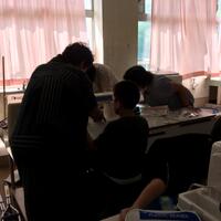 家庭科室は、冷房がなく汗びっしょりになりながらの作業です。