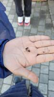 小さな霜柱の破片が手のひらに乗っていました。