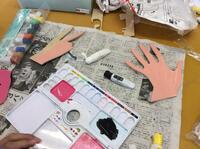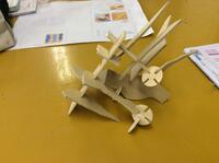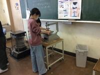 5年生、図画工作で電動糸のこぎりを使って作品を作っています。