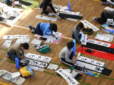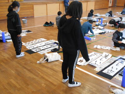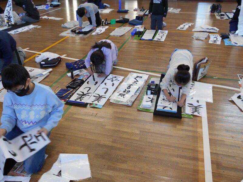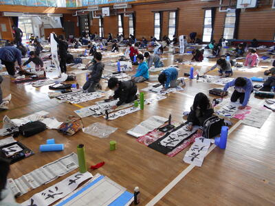 1月10日~12日にかけて、3~6年生は体育館にて書き初め大会を行いました。1,2年生は各教室にて、硬筆の書き初めを行いました。思い思いに書き上げた作品は、どれも力作です。今後の展示が楽しみです。写真は、3,4年生の様子です。