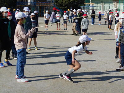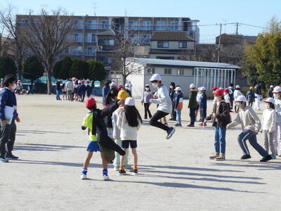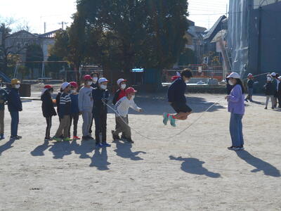異学年交流行事として、長なわ集会を実施しています。1月17日より31日まで、長なわ週間として行っています。1・6年生、2・4年生、3・5年生とペア学年でグループを作り取り組んでいます。どのグループも始めの記録より、向上するよう頑張ることでしょう。