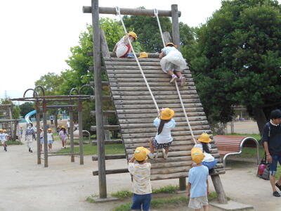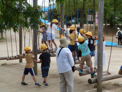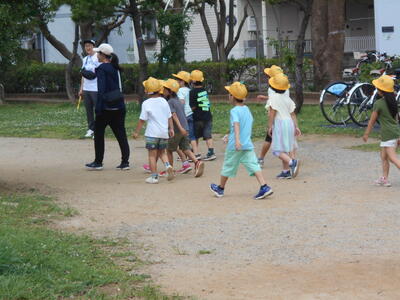 7月5日、1年生はえんぴつ公園に行きました。「みなみっ子サポーター」の方々に付き添っていただき、安全に活動することができました。4月に行った遠足の時とは違い、今回は生活科の学習として、公園でのマナーやルールを考えたり、遊具の用途について学んだりしました。学習の合間には、友だちと楽しく遊んでいました。
