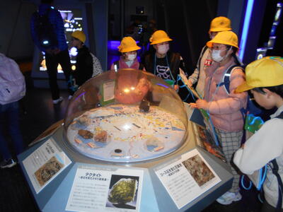 2月9日、4年生は野田市にあるしょうゆ工場と、茨城県自然博物館に行きました。しょうゆ工場では、しょうゆ作りを体験したり工場の様子を見学しました。博物館では、グループごとに館内を回り、地球の生い立ちや生命のしくみ、人間と環境についてなど、様々な観点から自然のことを学びました。