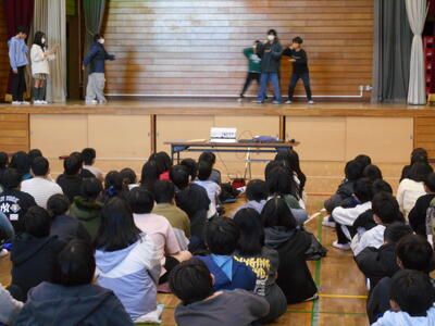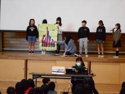 2月13日の6校時、インフルエンザの流行で延び延びになっていた、学校保健委員会を開催しました。給食・保健・体育のそれぞれの委員会が趣向を凝らした発表を披露してくれました。給食委員会は残菜について考え、苦手なものでも一口は食べようと提案していました。保健委員会は虫歯の調査をし、朝晩の歯磨きの大切さを訴えていました。体育委員会は体力アップに向けた、外遊びの提案をしてくれました。一人一人が自覚を持って取り組んでくれるとよいですね。