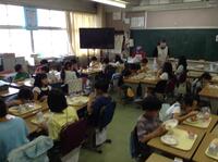 友達と話をしながら、おいしい給食をいただきます。