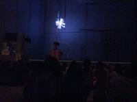 シャボン玉液につけたロープを使って