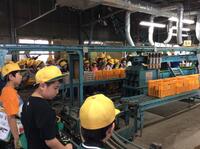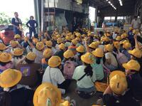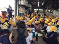 迎米選果場では、収穫した梨をベルトコンベアーで運ぶ様子を見学しました。