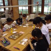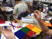 「ゆめ色ランプ」セロハンを貼ってランプシェードを作っています。