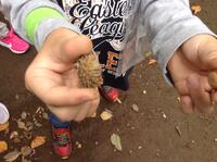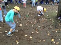 学校にはない、笠をかぶったどんぐりや大きなどんぐり、いろづいた葉など