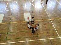 小さなラグビーボールを使った鬼ごっこのようなゲームです。