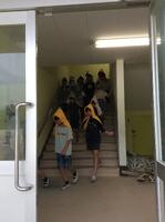保護者の皆様、南行徳小学校の多くの先生たちに送られて、出発しました。