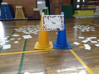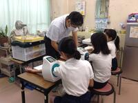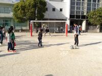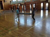2年生 ボールを相手まで飛ばす練習をしていました。