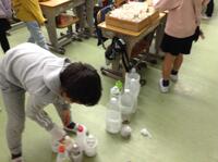 迷路・ボーリングなど、拾った秋の葉や実、身近なものを利用して遊びを考えています。