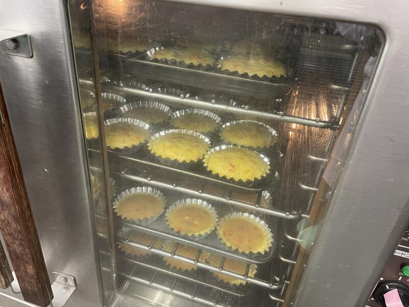 オーブンで焼いています。絵本に出てくるような丸いオムレツです。