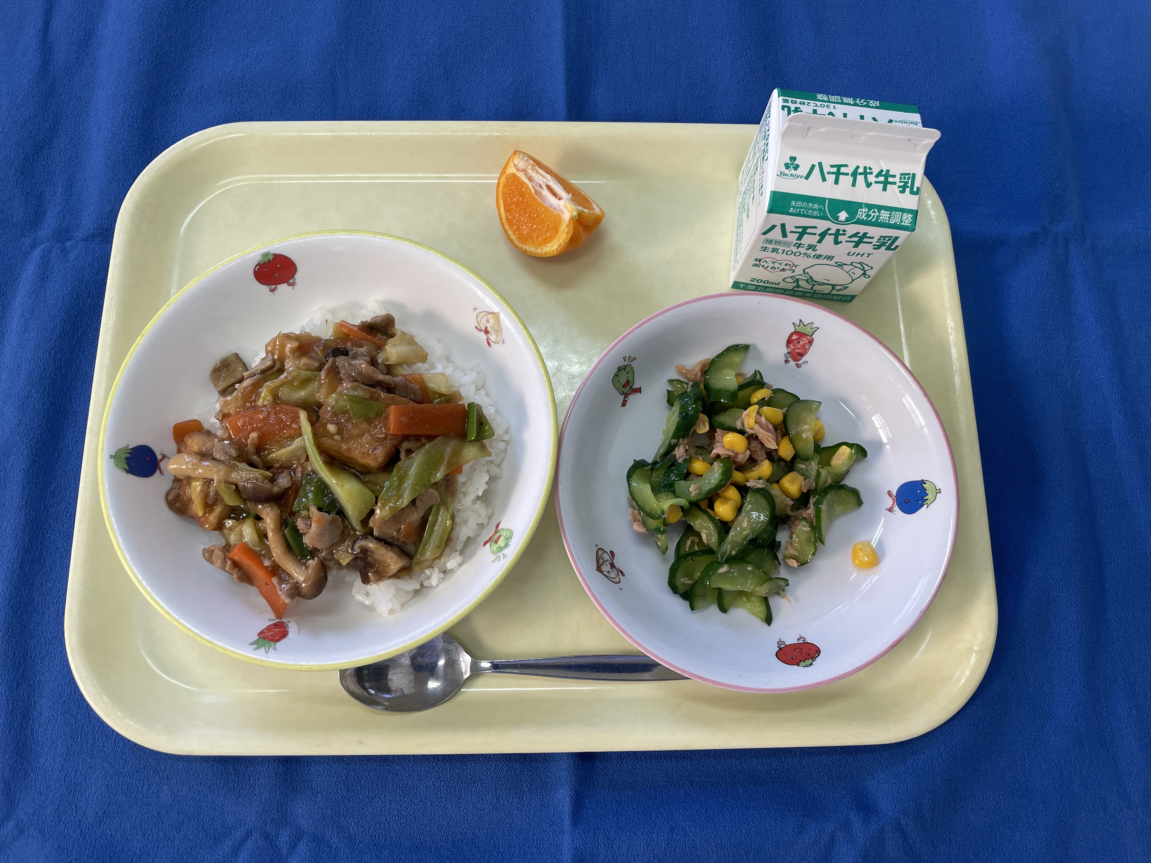 麦ごはん ホイコーロー丼 きゅうりとツナの中華和え ぽんかん 牛乳 |