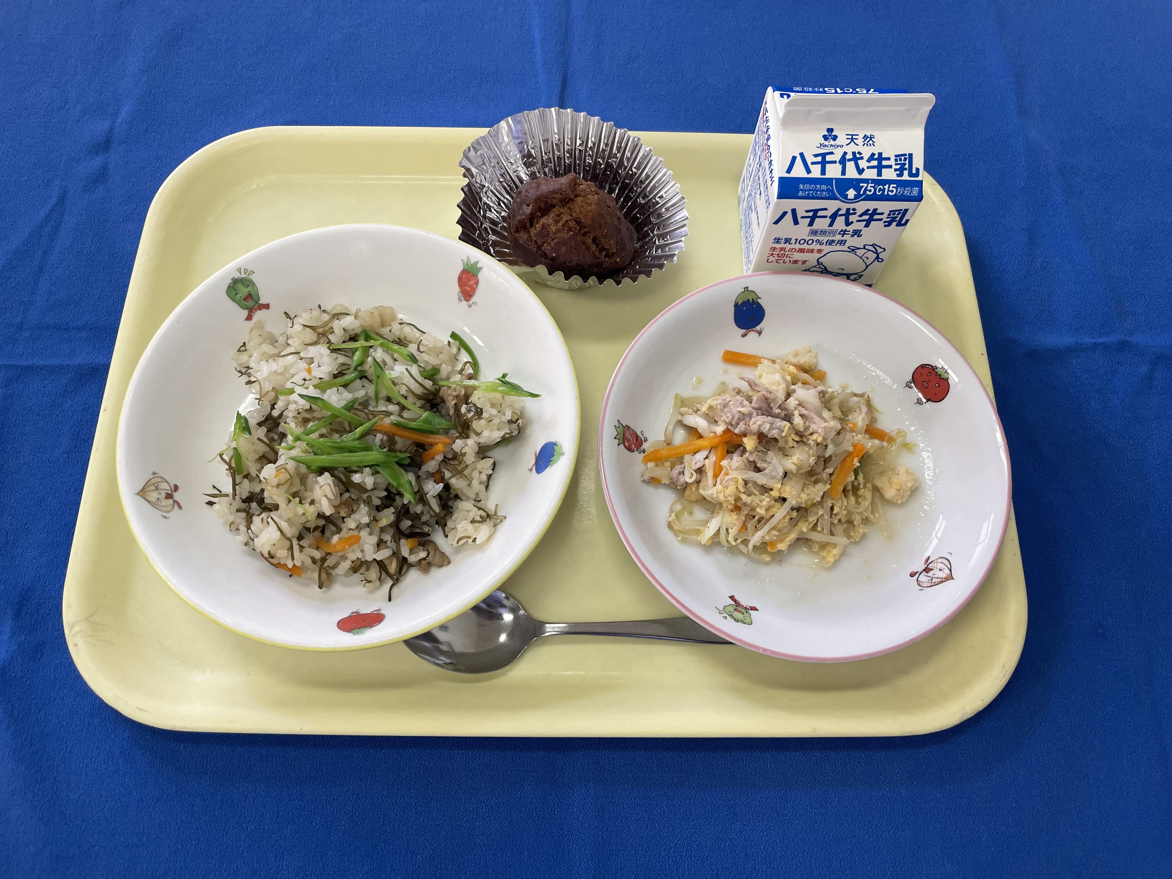 【沖縄献立】 ジューシー ねぎチャンプルー サーターアンダギー 牛乳 |