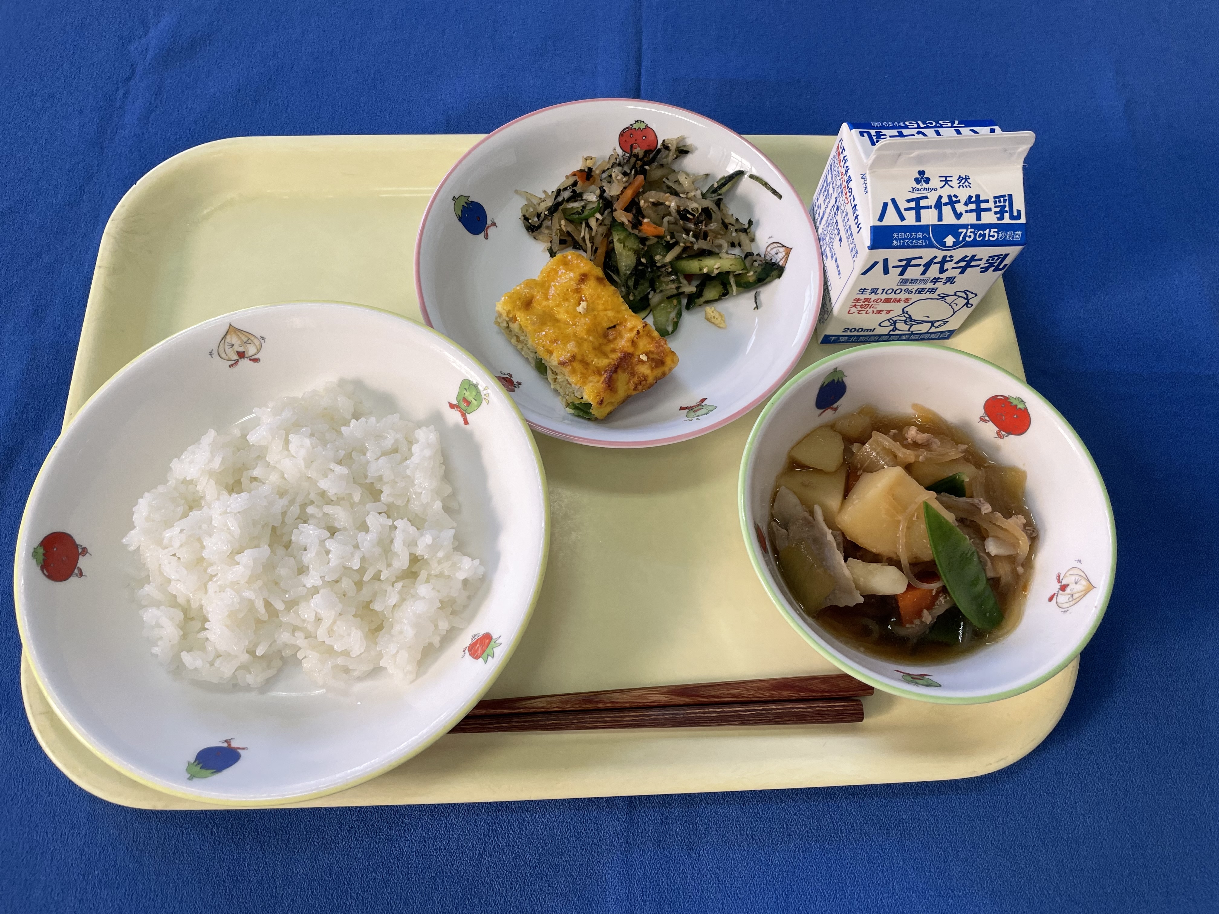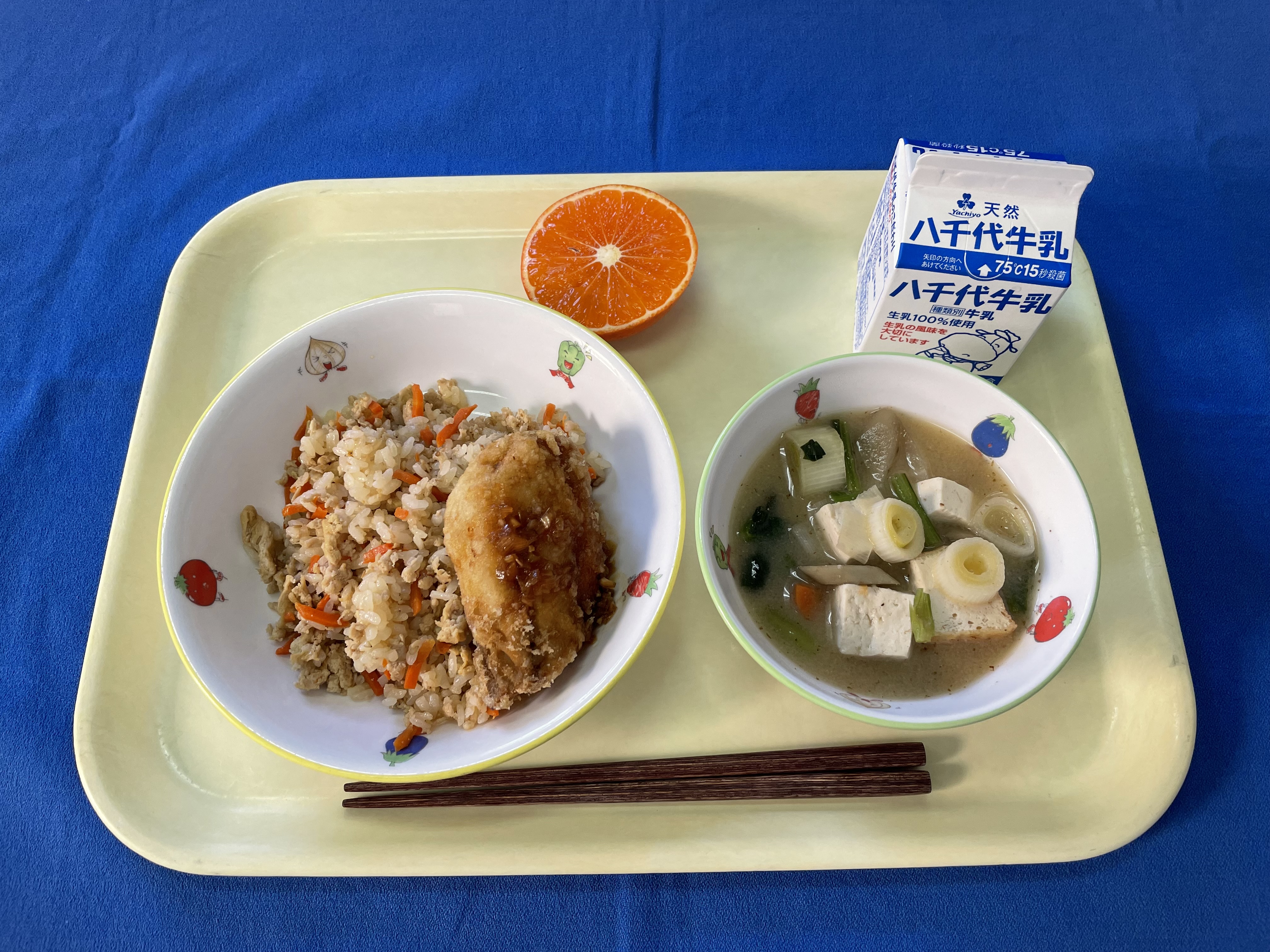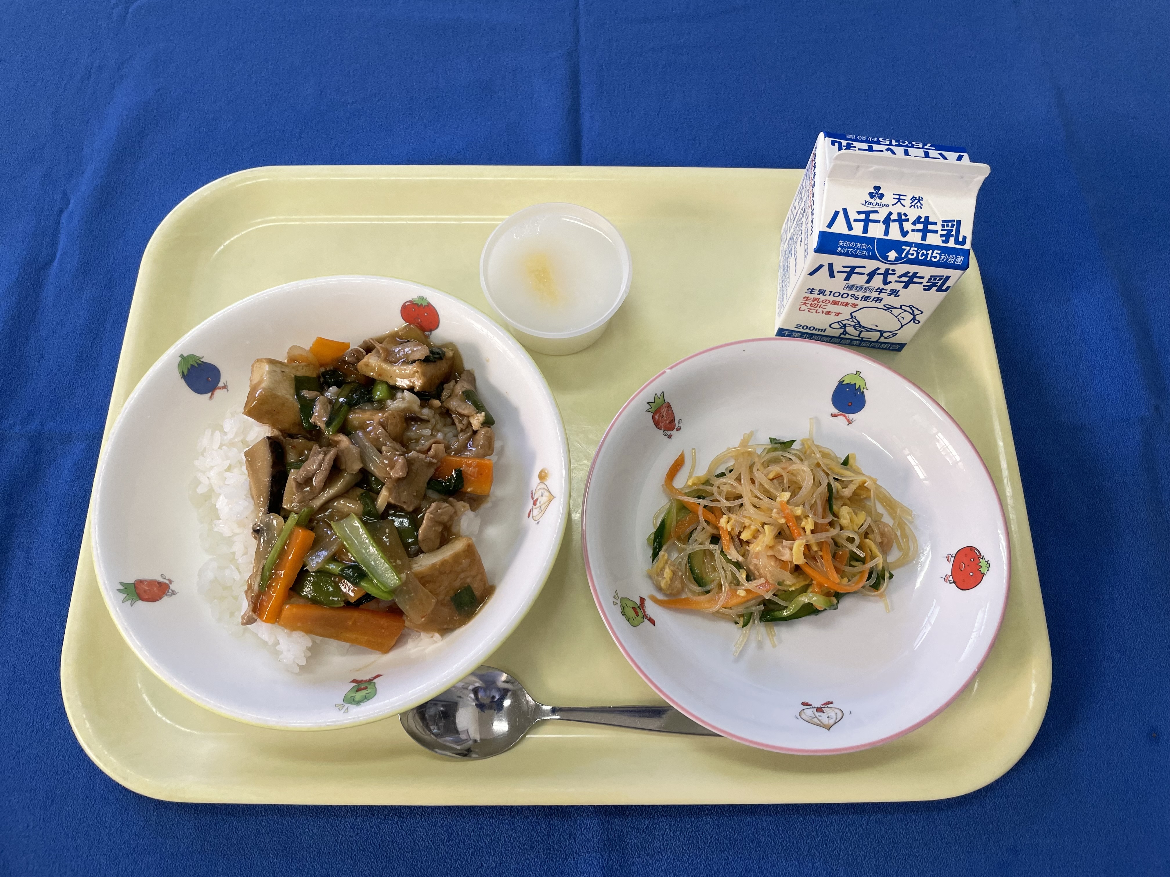 今日は、「チリとチリリ」という絵本に出てくる「蒸しパン氷砂糖かけ」が給食に出ます。