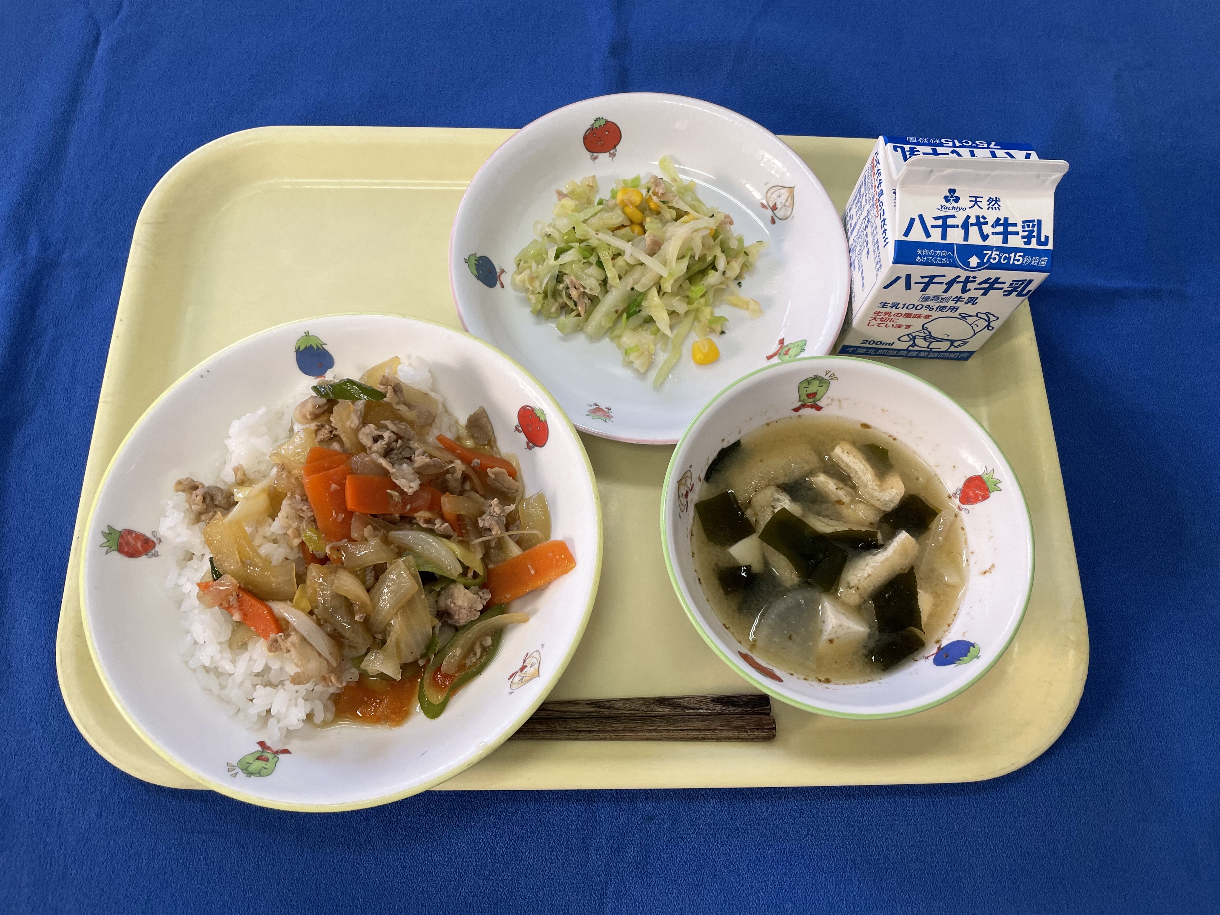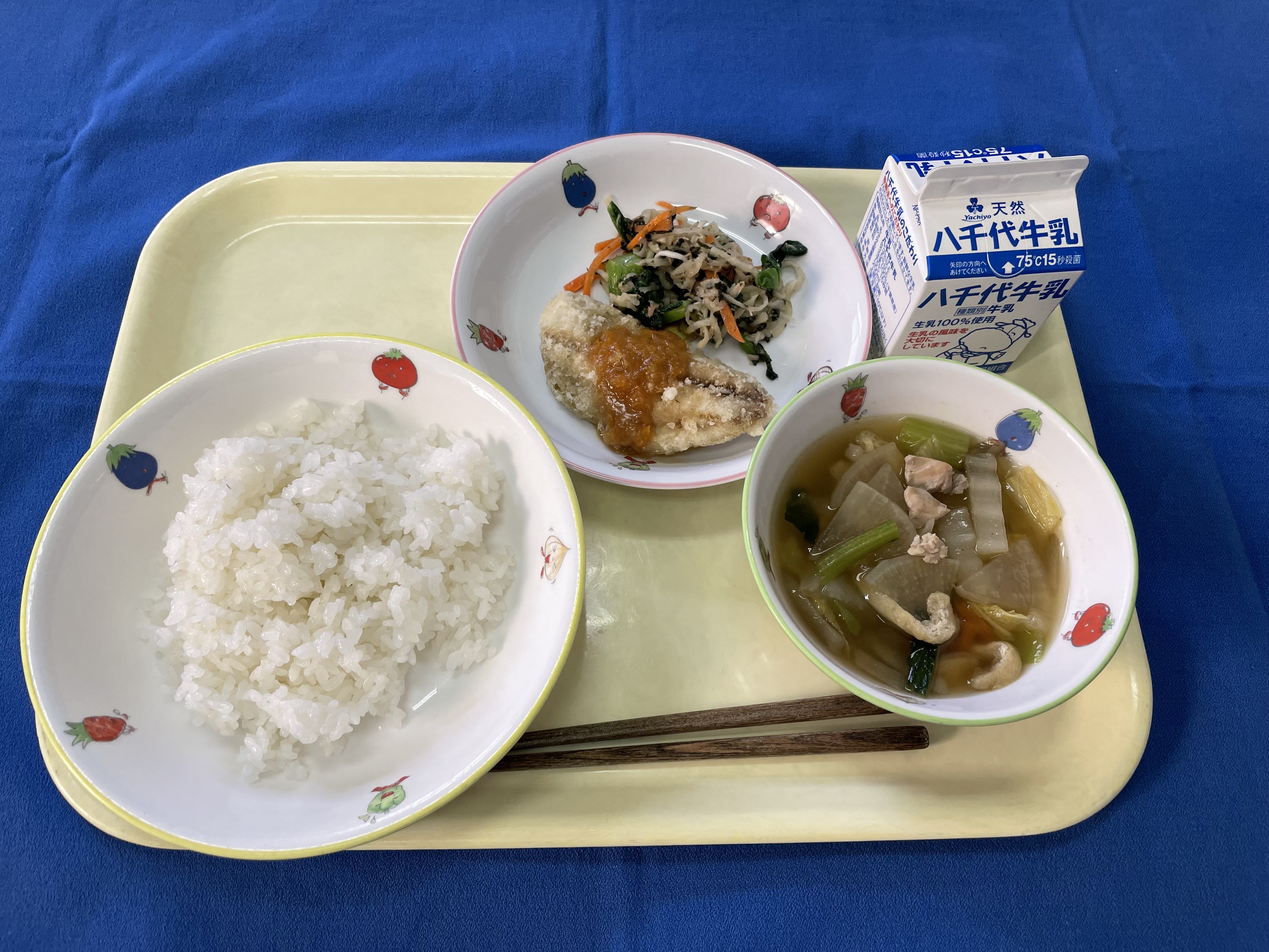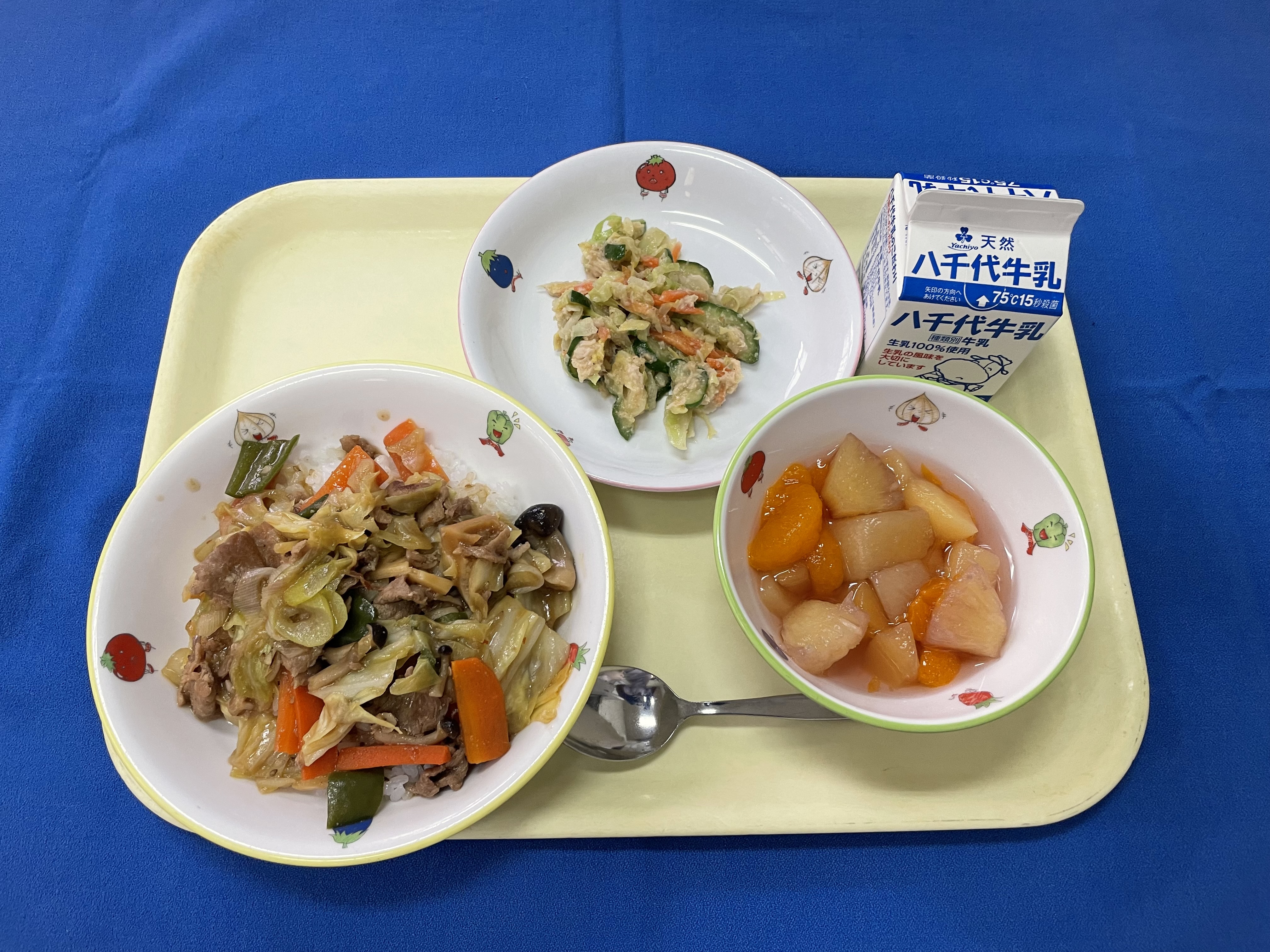 今日は、「チリとチリリ」という絵本に出てくる「蒸しパン氷砂糖かけ」が給食に出ます。