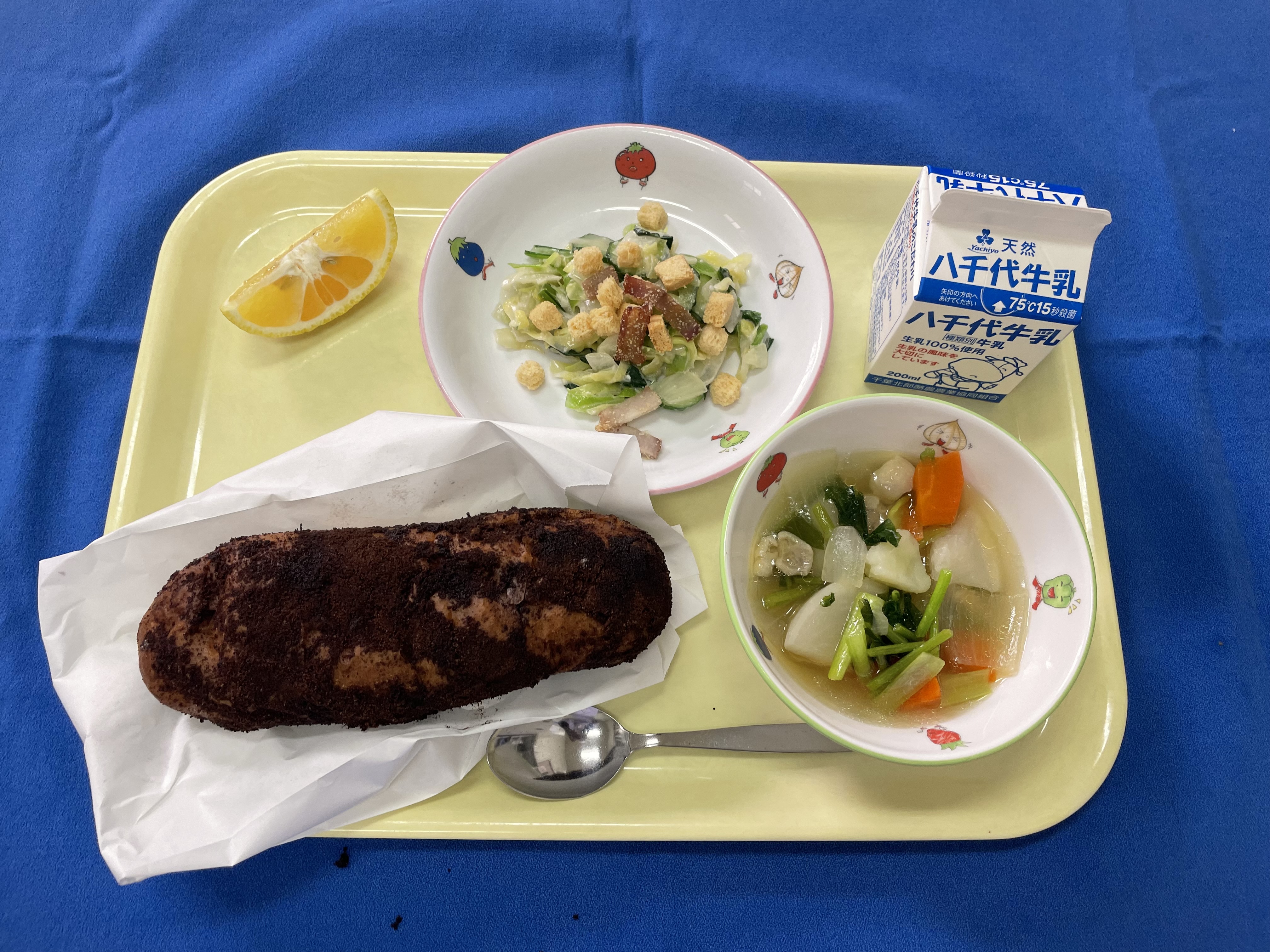 今日は、「ハンバーガーぷかぷかどん」という絵本に出てくるハンバーガーが給食に出ました。