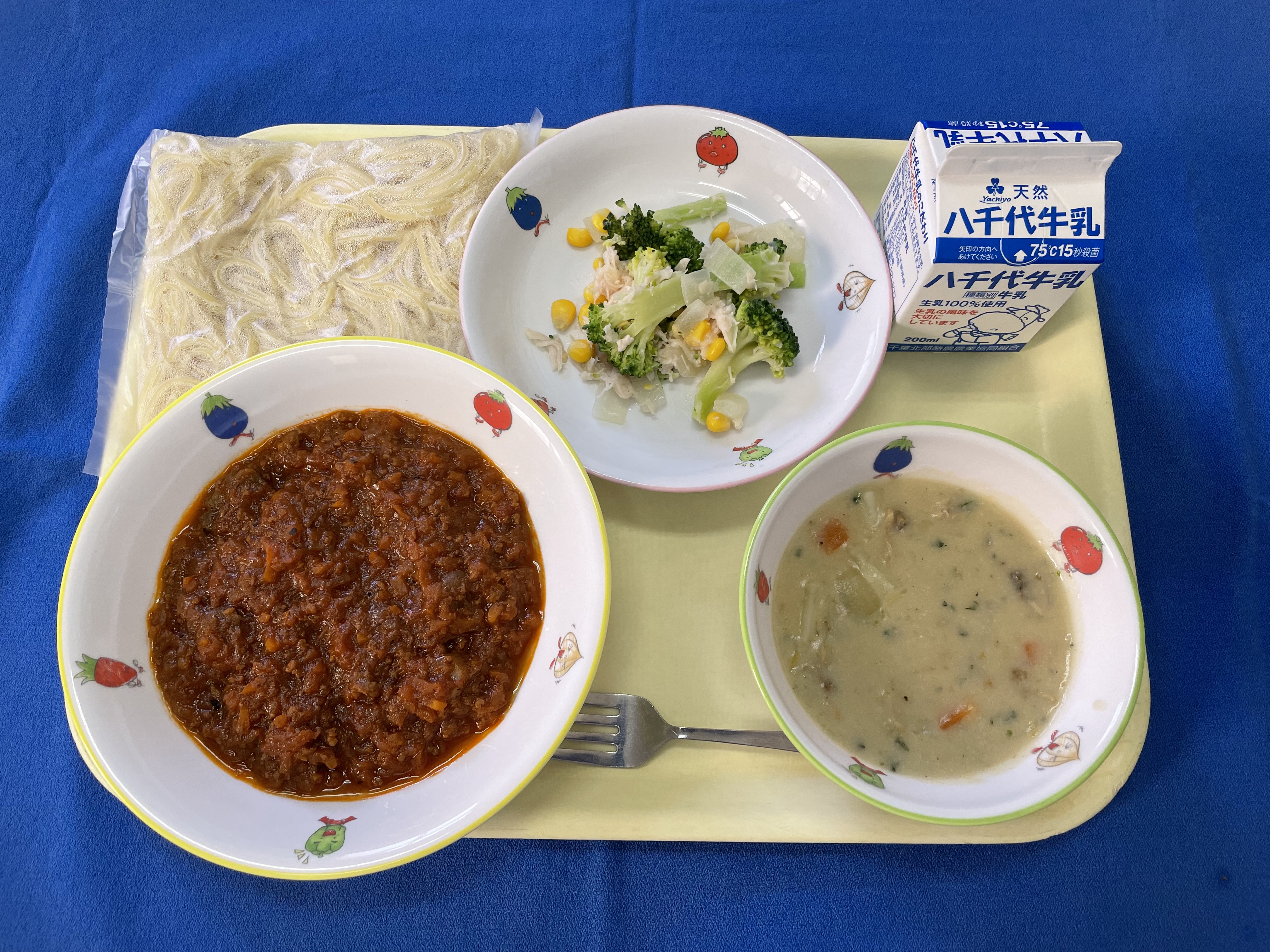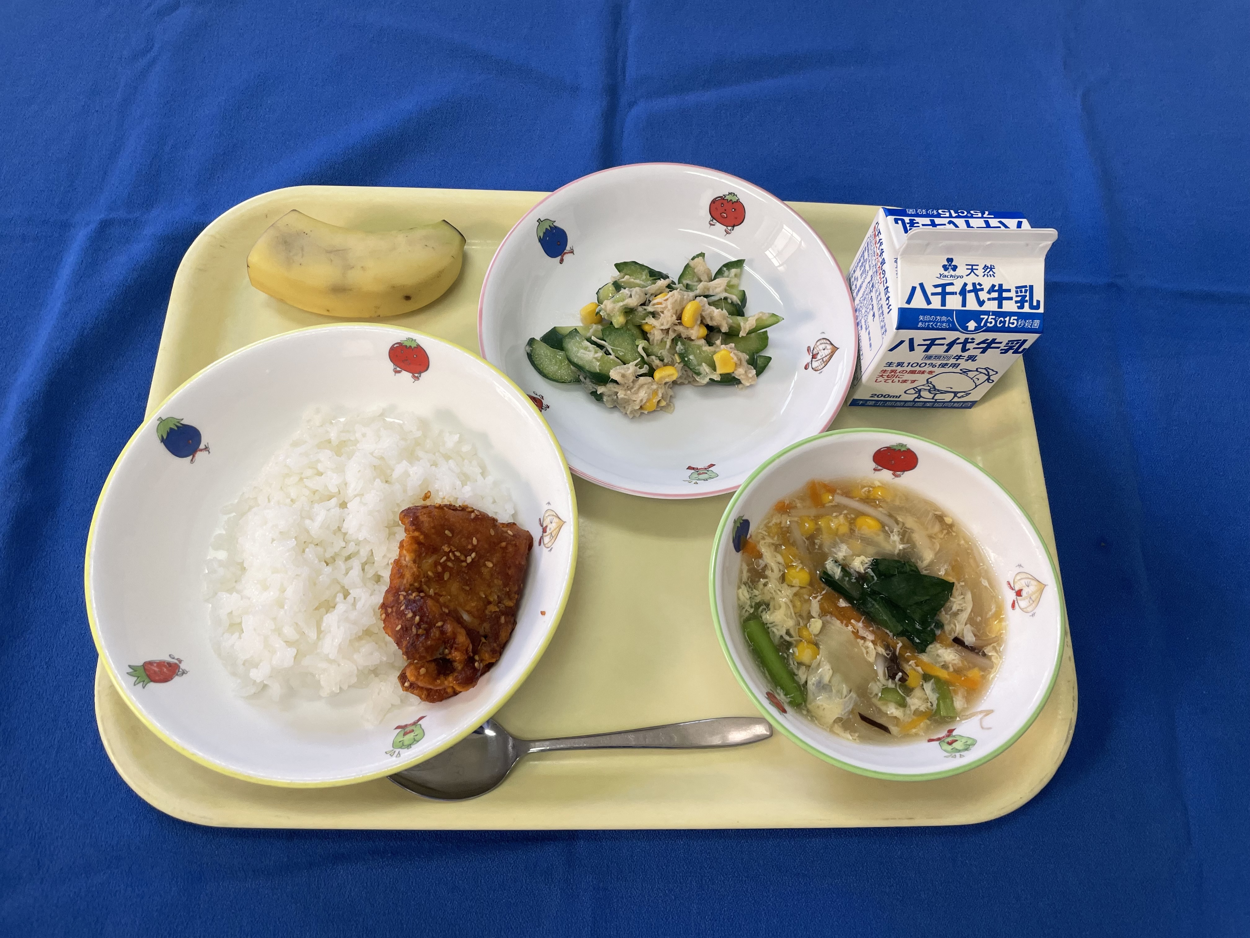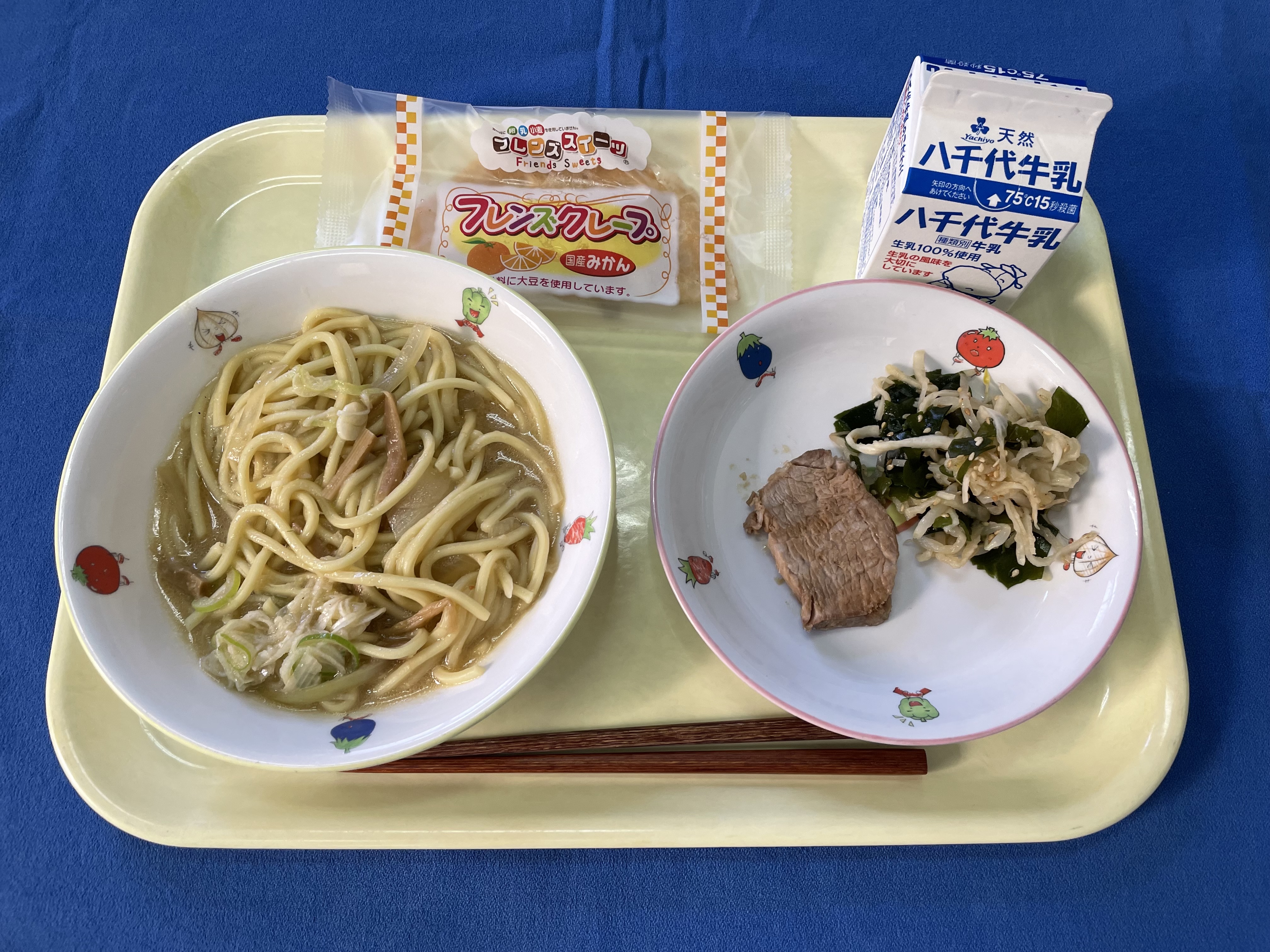 今日は、「おばけのきゅうしょく」という本に出てくる「フルーツゼリー」が給食に出ます。