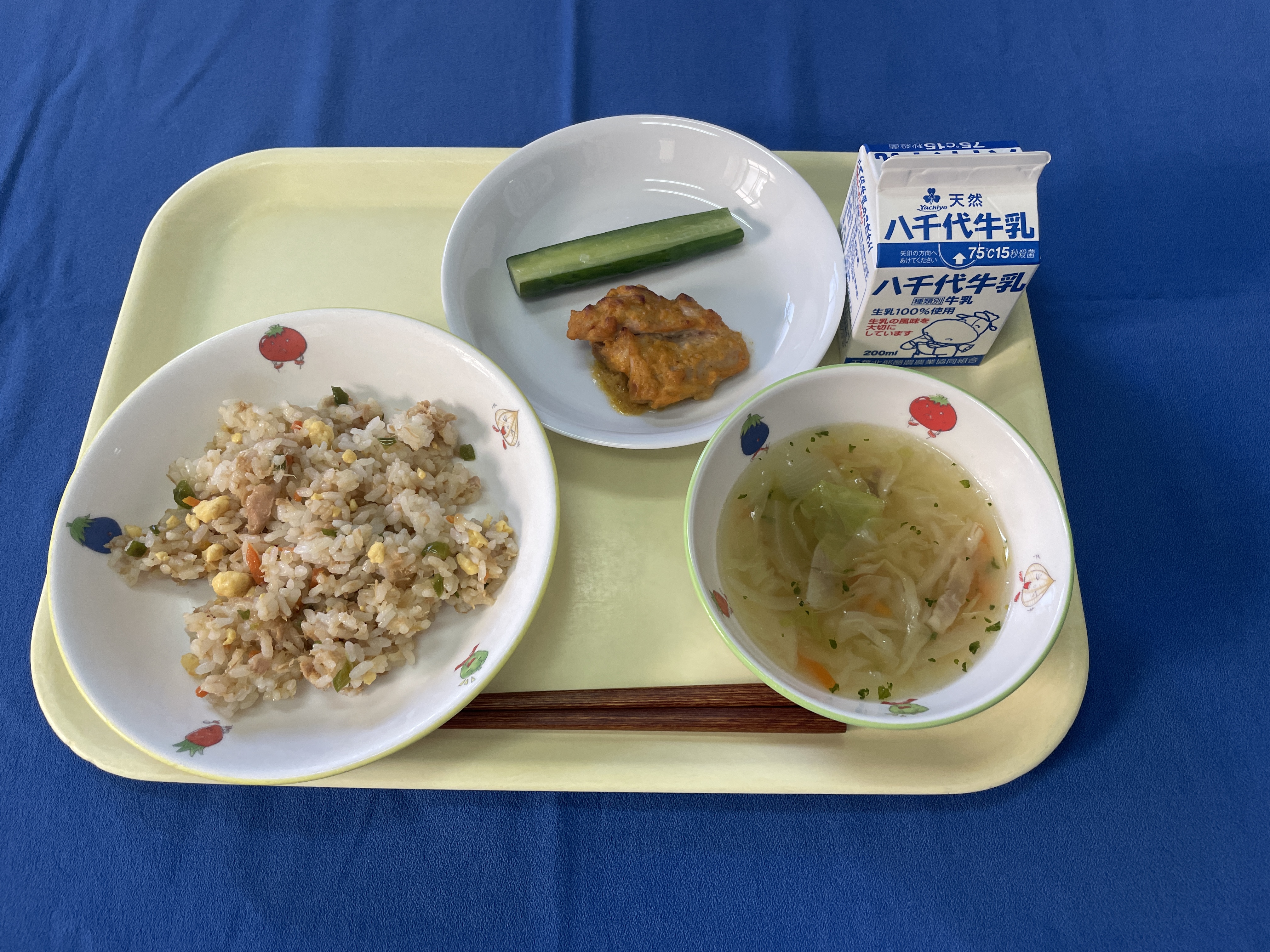 牛乳(千葉) 米(千葉) 人参(千葉/銚子) キャベツ(千葉/松戸) きゅうり 大根(青森/十和田) 玉ねぎ(千葉/長生) じゃがいも(長崎/雲仙) 豚ひき肉(千葉) |