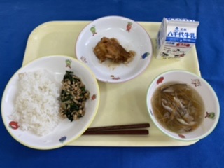 牛乳 ご飯 赤魚の香味揚げ 納豆和え 沢煮椀 |