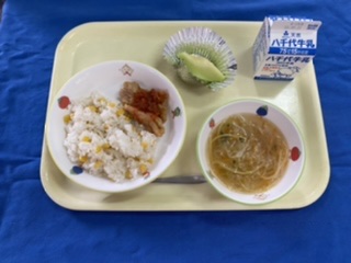 牛乳 コーンライス 鶏肉のメキシカンソース コンソメジュリアン メロン |