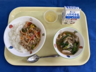 牛乳 ごはん チンジャオロース 春雨スープ りんごゼリー |