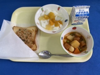 牛乳 きなこ揚げパン ミネストローネ フルーツパンチ |