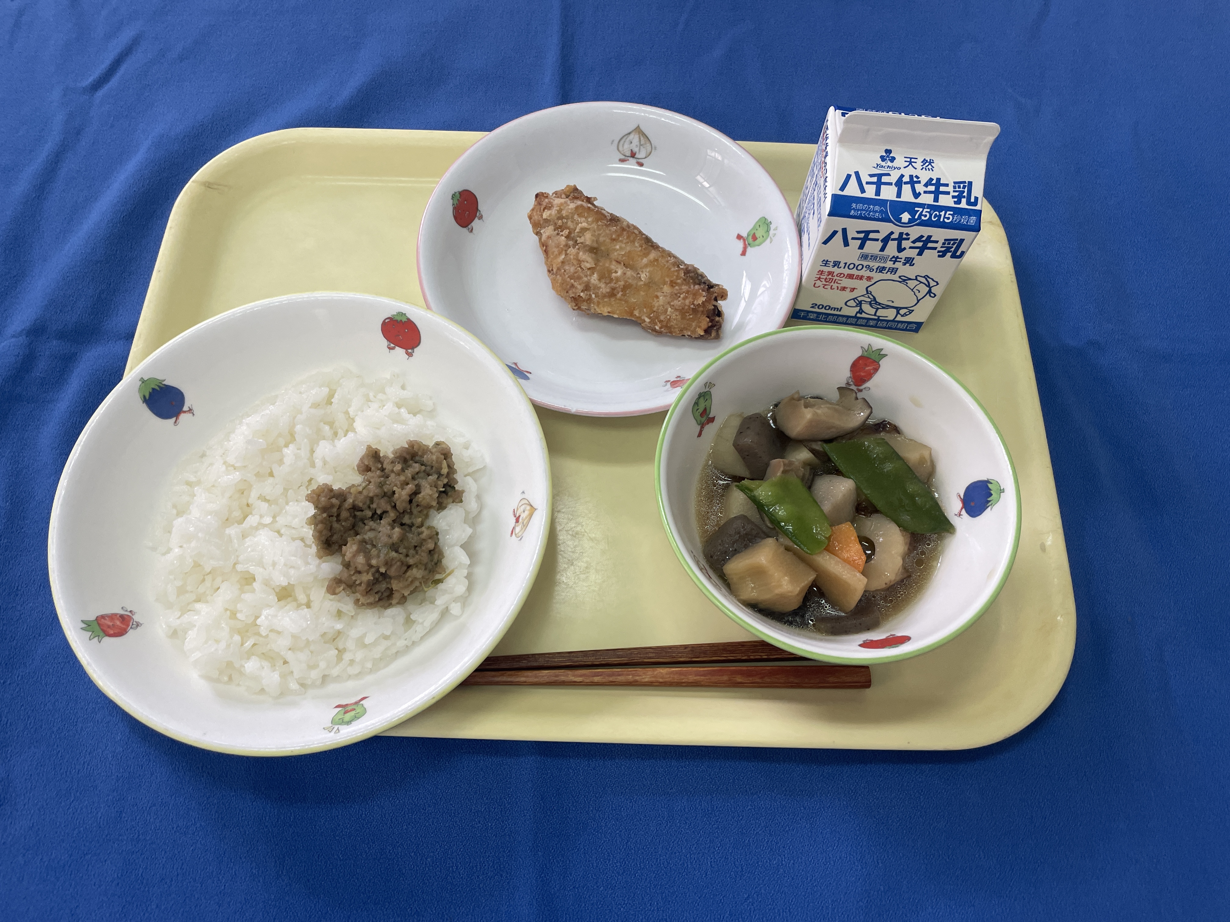 【和食の日献立】 ご飯 ピーマンの肉みそ さばのから揚げ 筑前煮 牛乳 11月24日は和食の日です。 少し早いですが、今日は和食の日献立を提供しました。 |