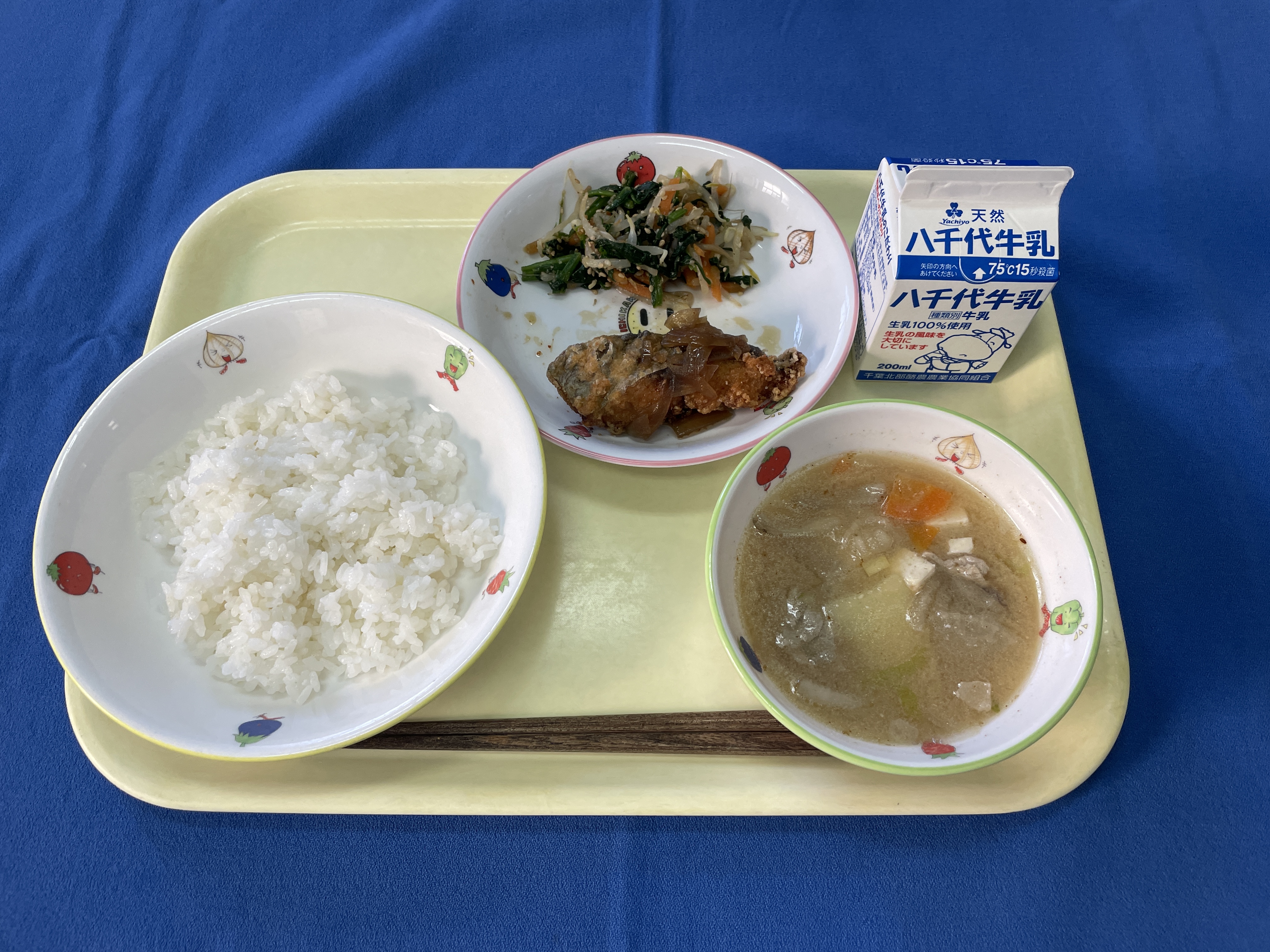 ご飯 魚の和風マリネ ごま和え 豚汁 牛乳 |