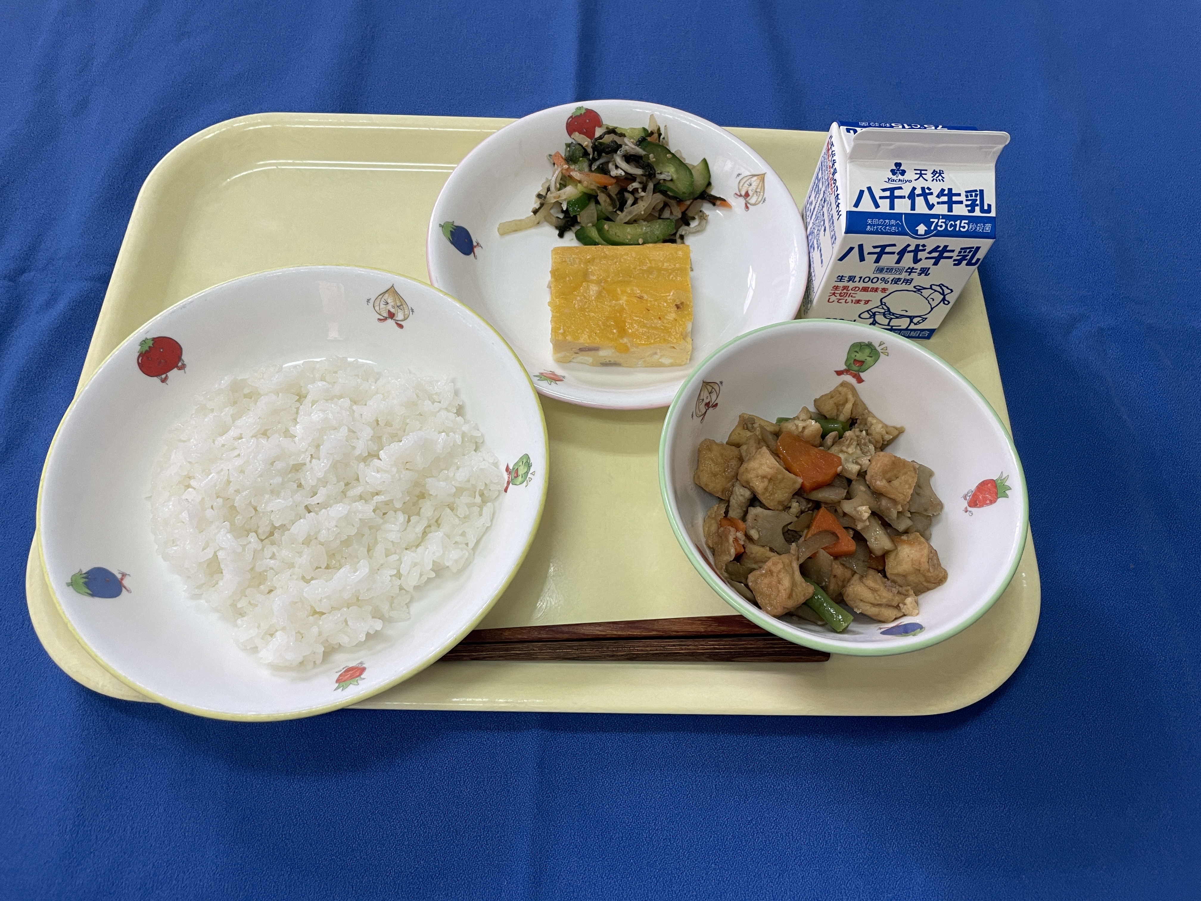 ご飯 高野豆腐入り卵焼き じゃこと大根サラダ 厚揚げの根菜煮 牛乳 |