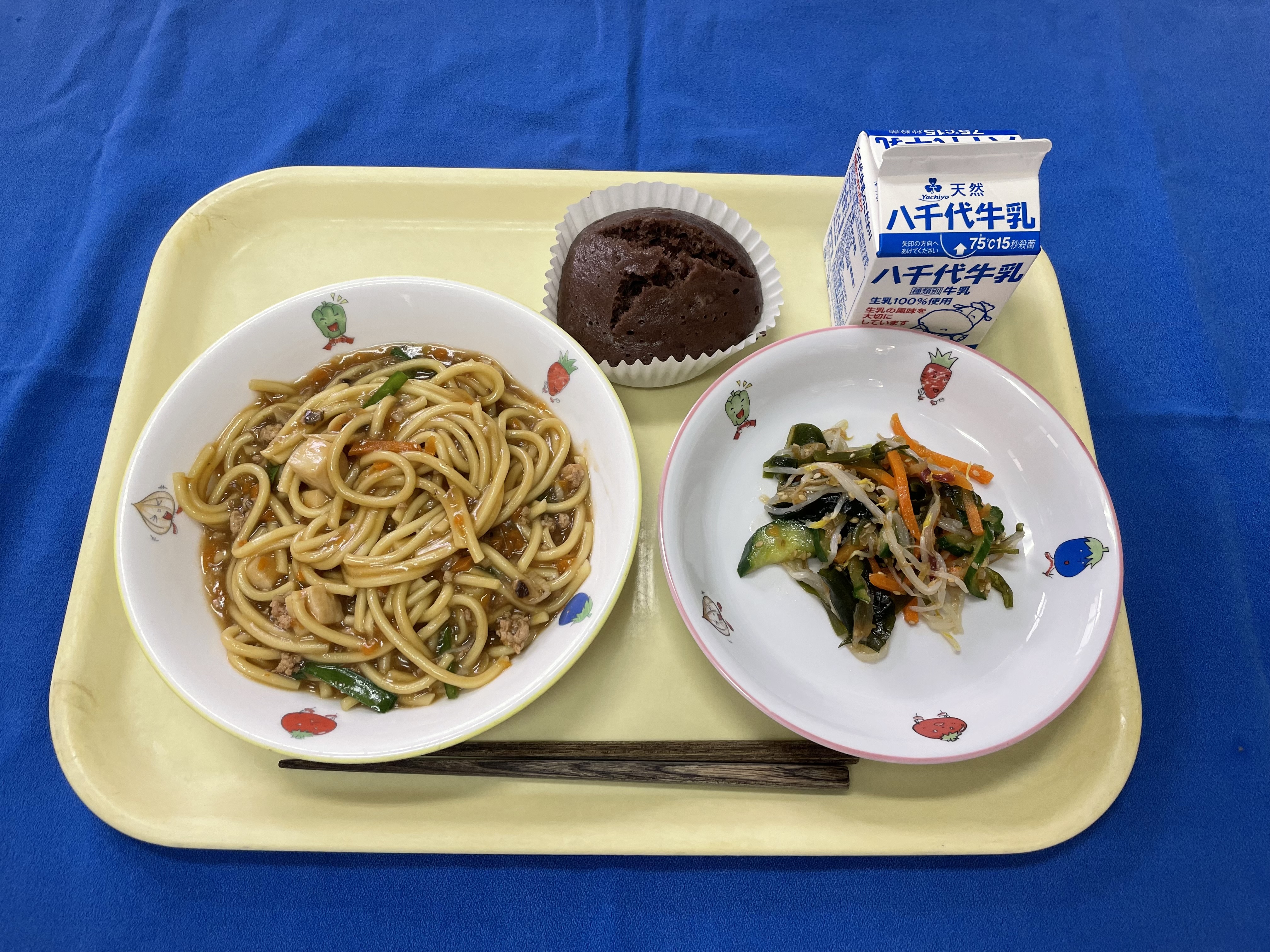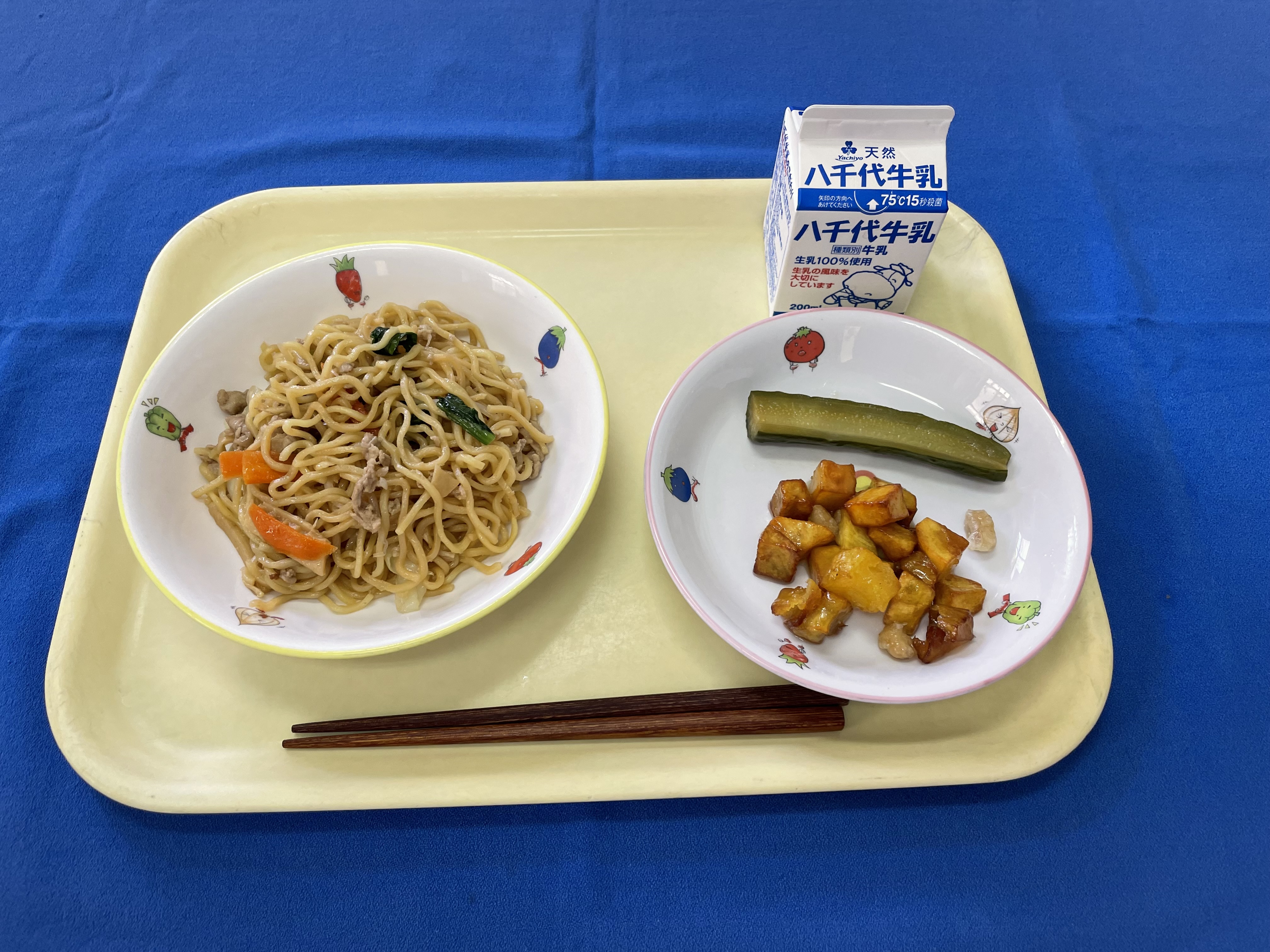 やきそば きゅうりの中華づけ キャラメルポテト 牛乳 |