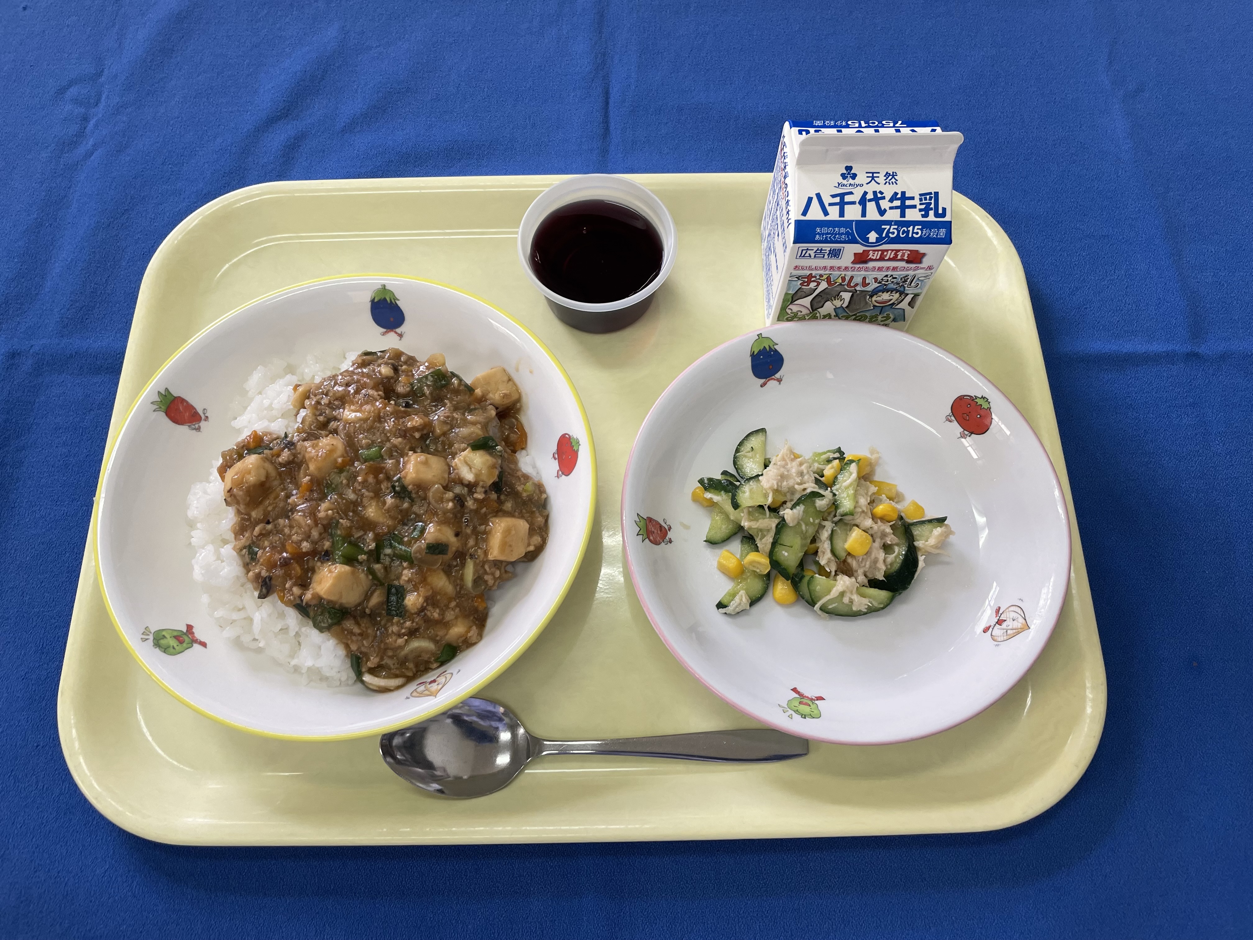 麦ごはん マーボー豆腐 きゅうりとささみの中華和え ぶどうゼリー 牛乳 |