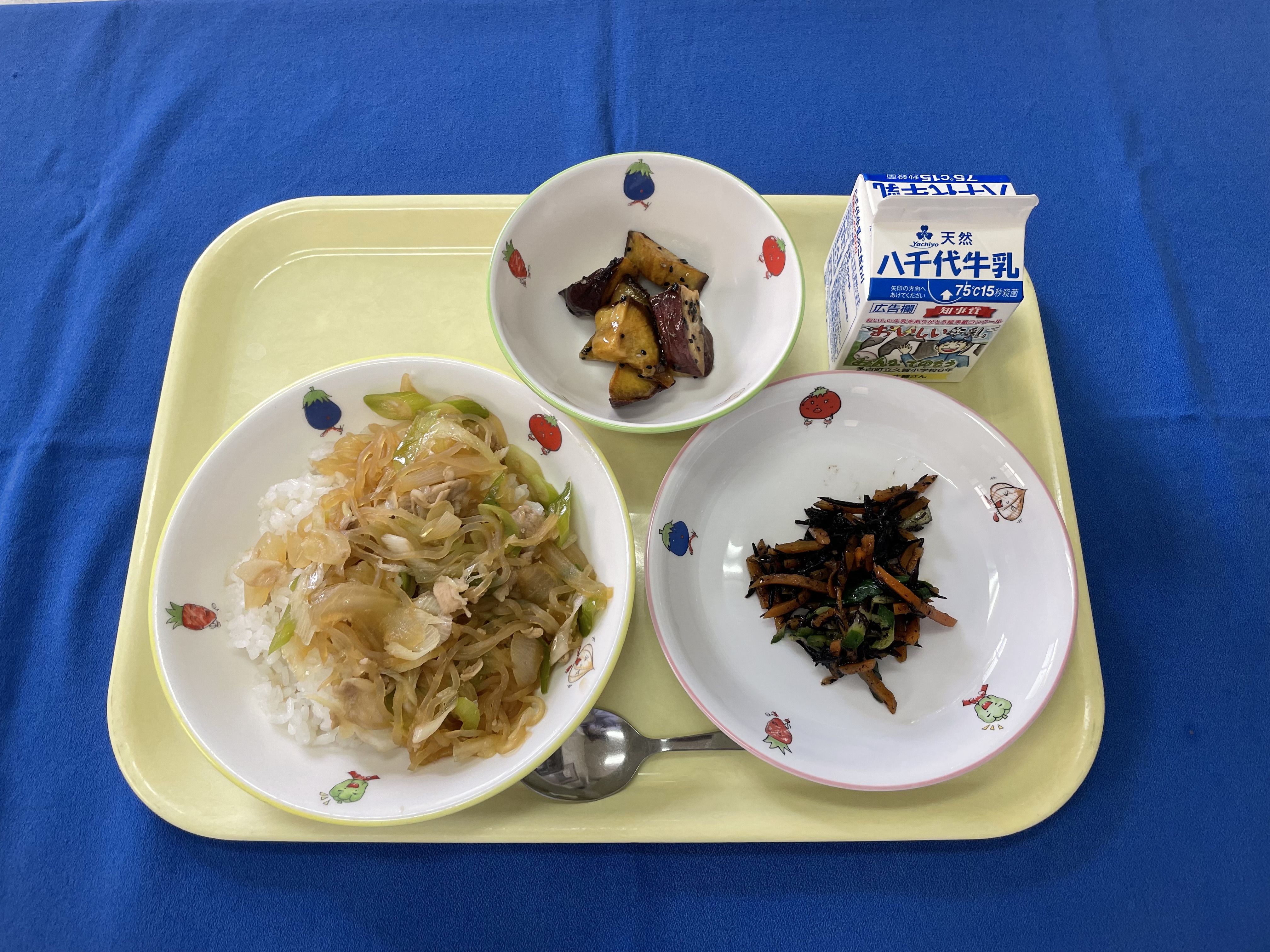 麦ごはん 豚丼 ひじきのマリネ 大学芋 牛乳 |