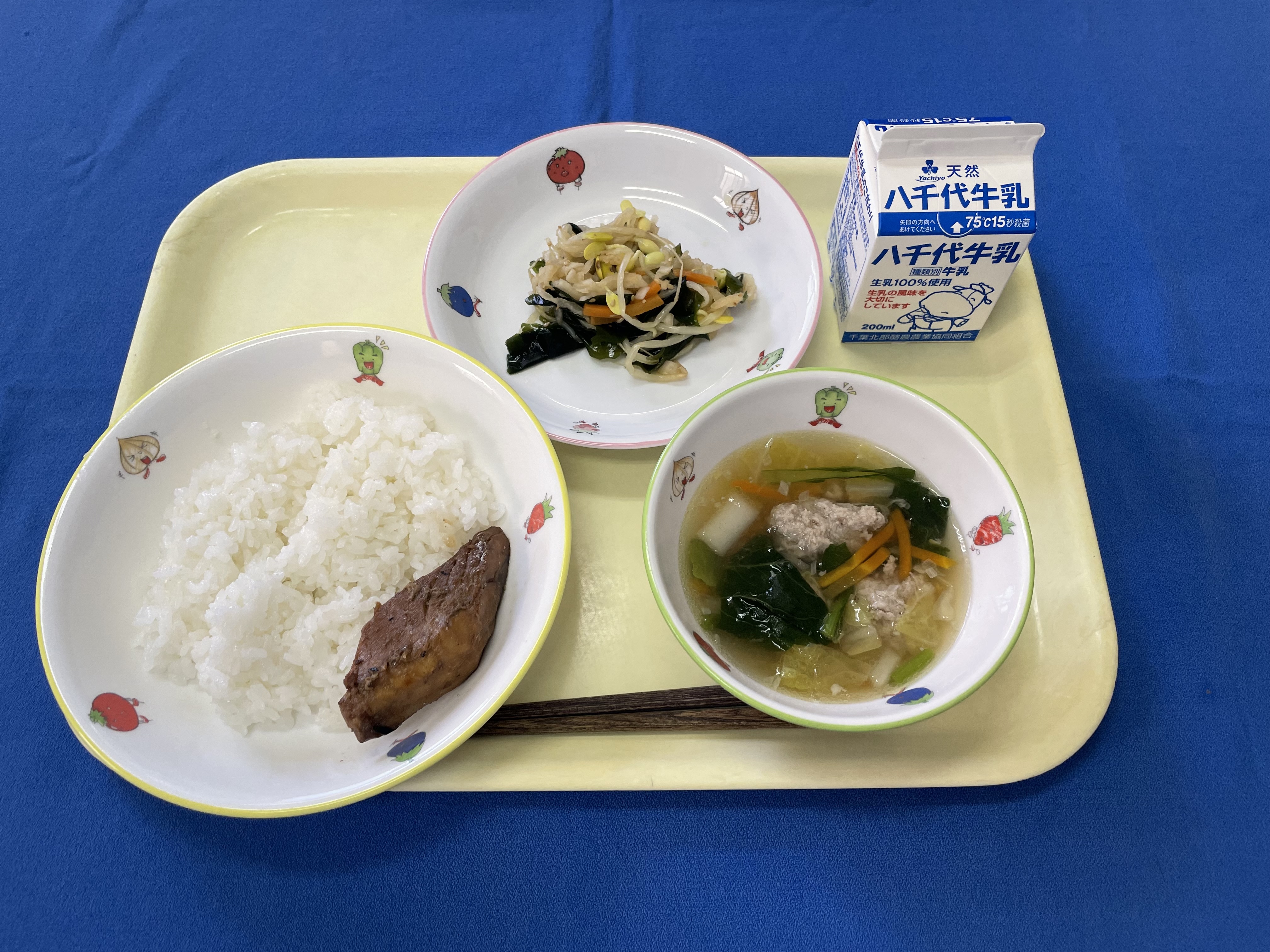 牛乳(千葉) 米(千葉) 鶏肉(岩手) 白菜(茨城) にんじん(千葉/船橋) キャベツ(愛知) パセリ(長野/松本) |