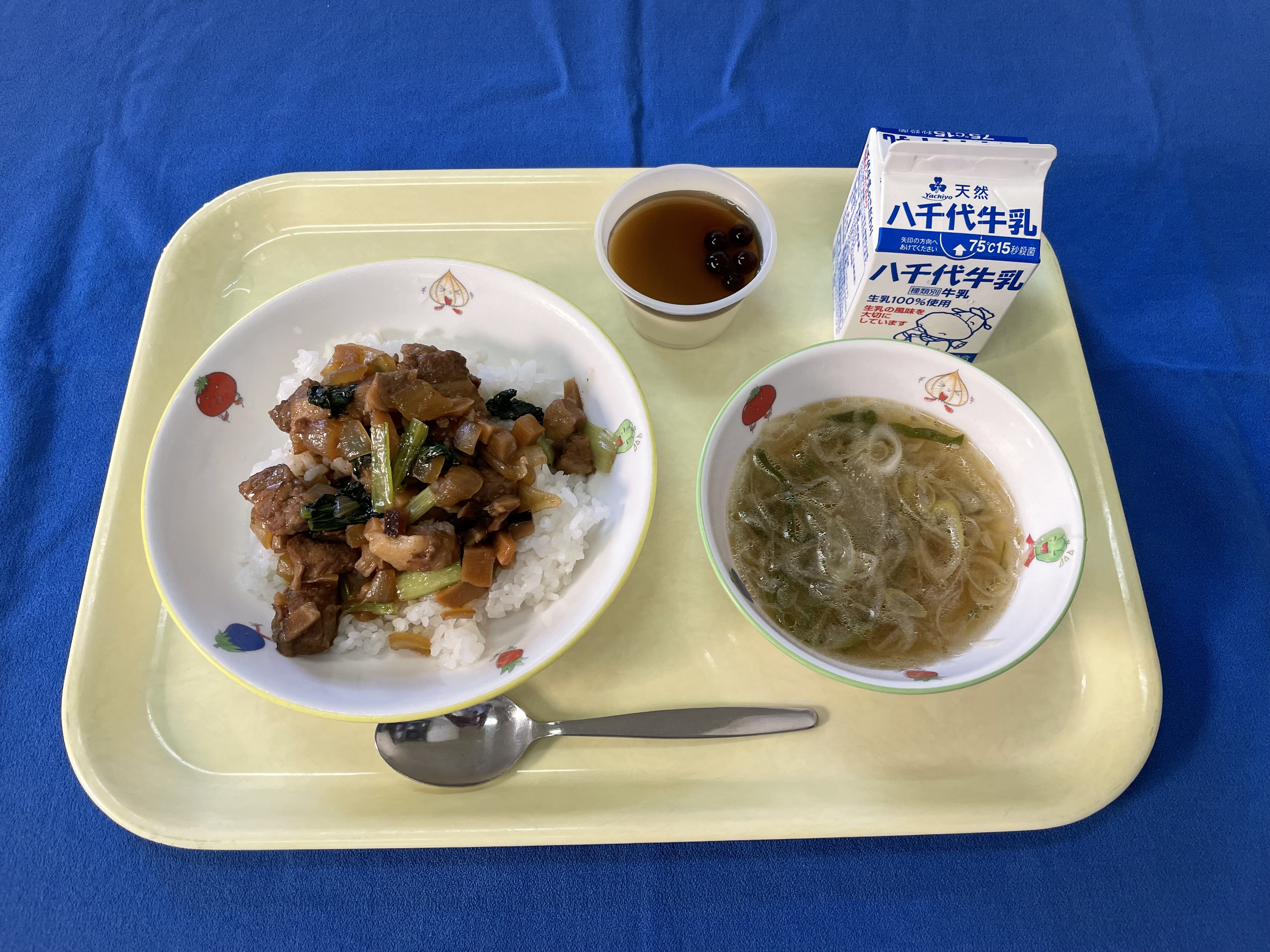 【台湾献立】 ご飯 ルーロー飯 大根スープ 豆花 牛乳 |