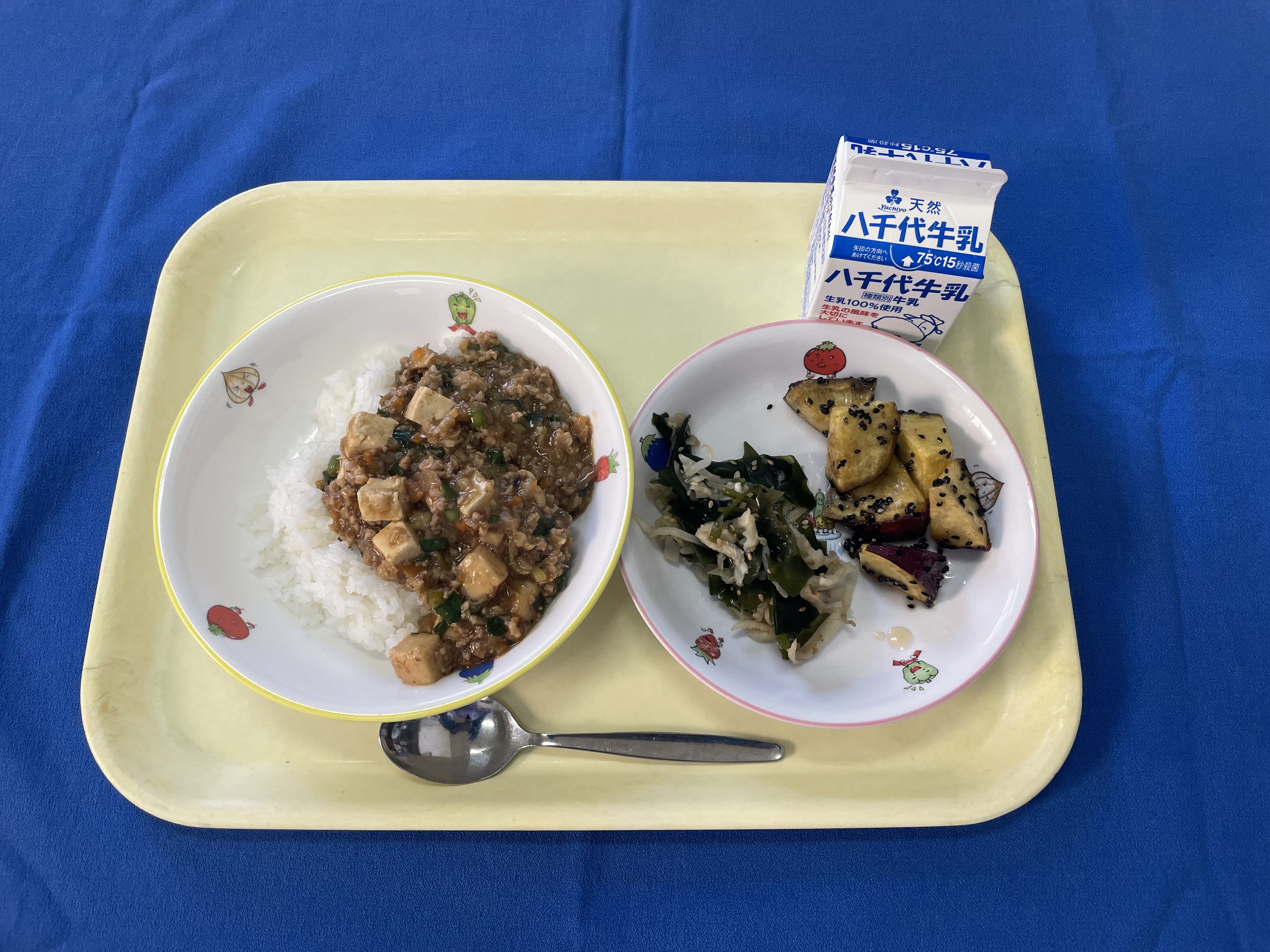 ご飯 マーボー豆腐 切り干しのナムル 大学芋 牛乳 |
