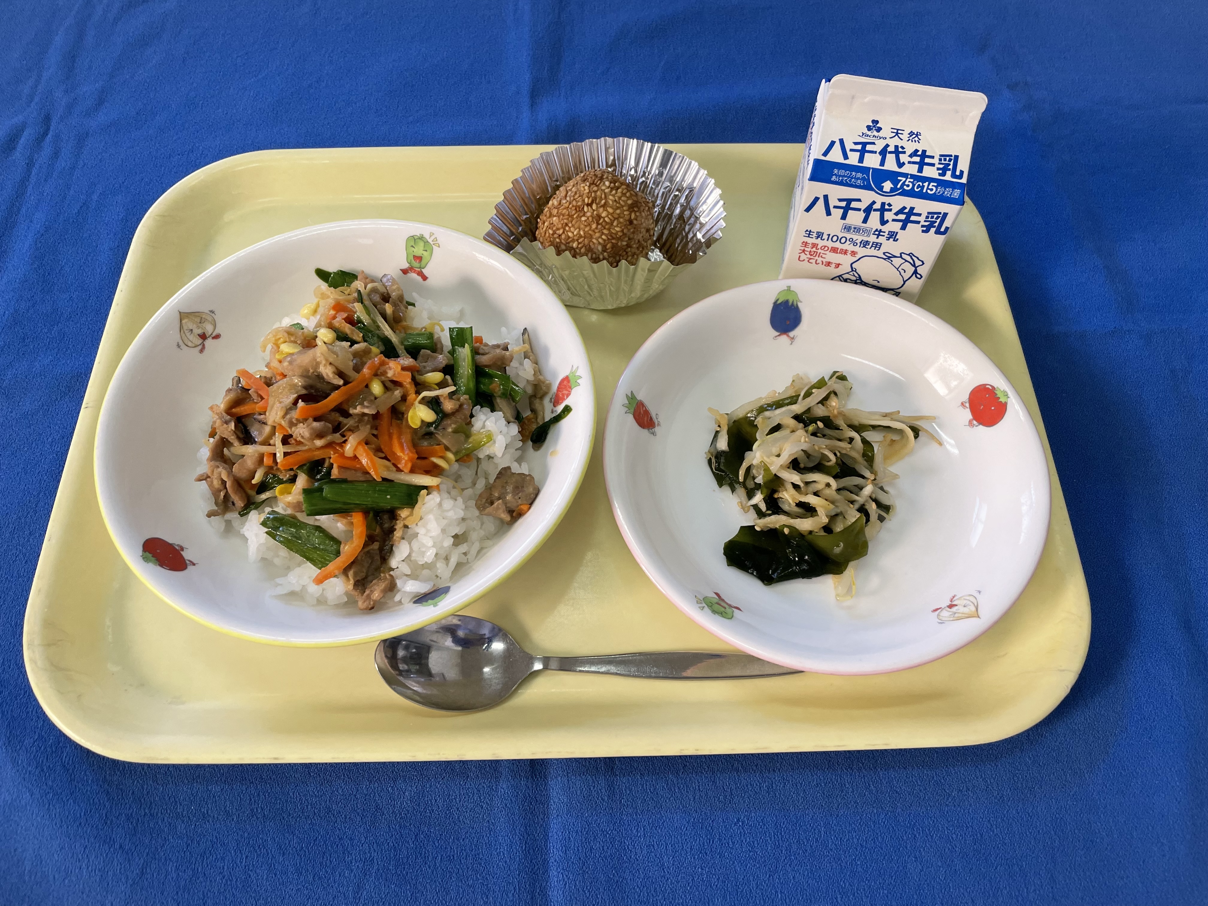 ご飯 焼肉丼 ひじきの炒め物 牛乳 |