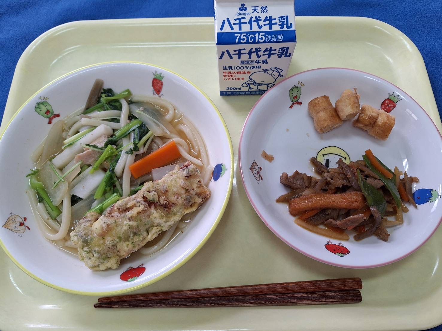七草うどん ちくわの磯部揚げ 五目きんぴら おふのラスク 牛乳 |