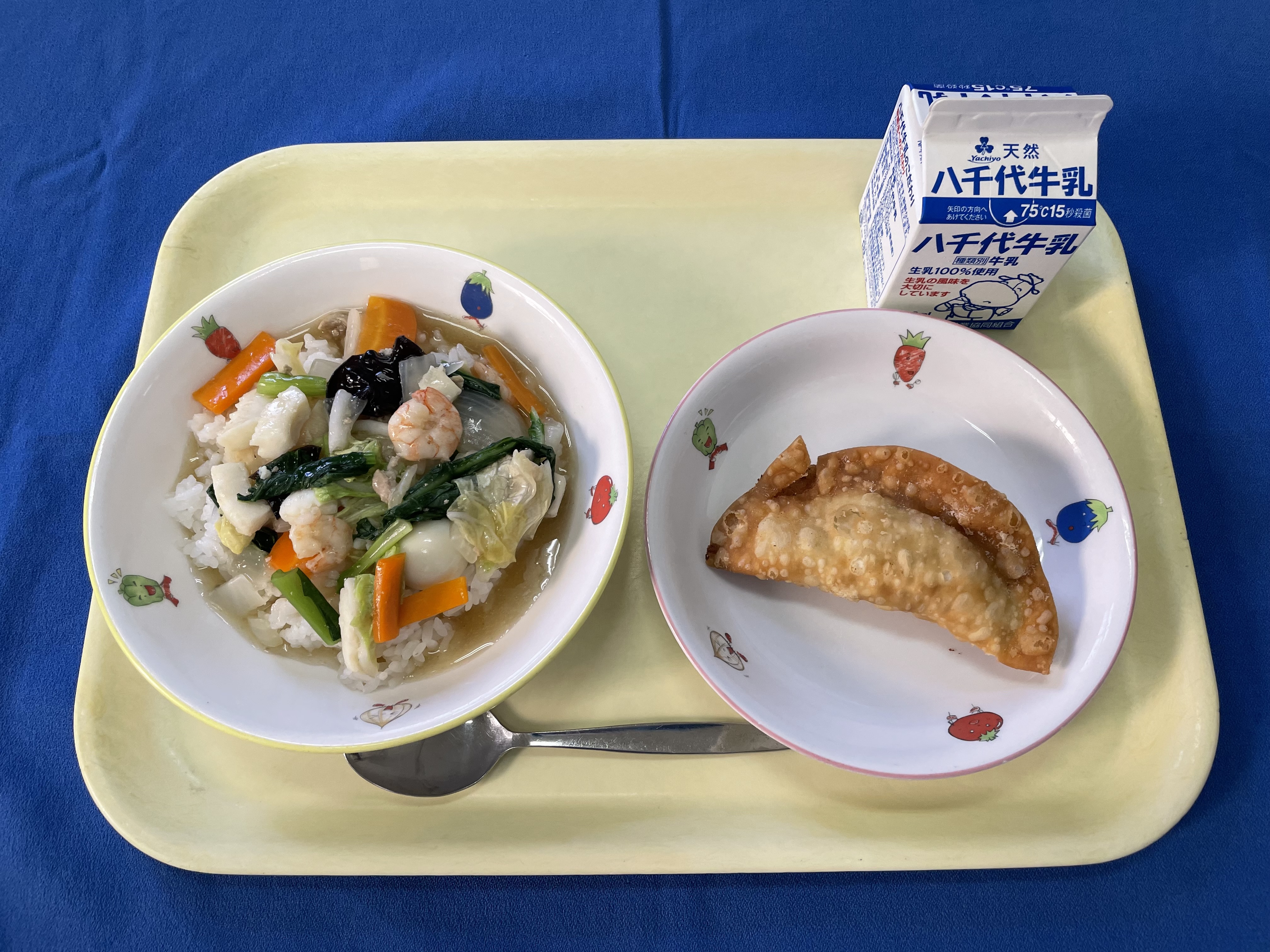麦ごはん 中華丼 サモサ 牛乳 |