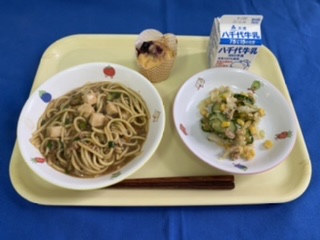 牛乳 ジャージャー麺 わかめスープ キャロットケーキ |