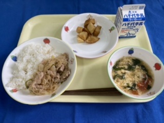 牛乳 ごはん 回鍋肉 じゃがいものハニーサラダ チーズ |