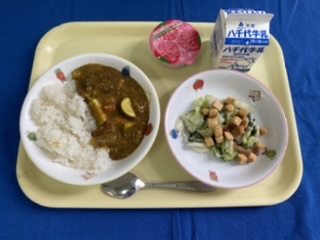 牛乳 ごはん チキンカレー ひじきのマリネ ヨーグルト |